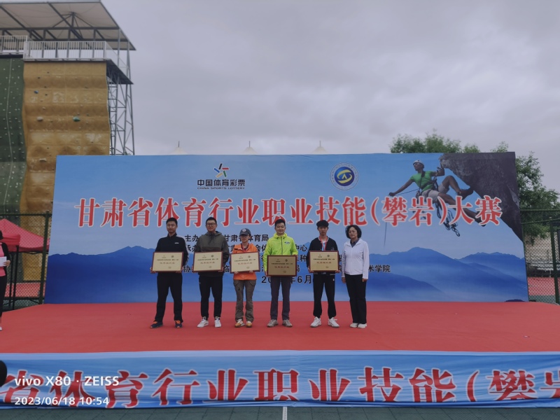 6月17-18日,以“岗位技能练兵、服务全民健身”为主题的甘肃省体育行业职业技能(攀岩)大赛在甘肃建筑职业技术学院落下帷幕。yl88858永利中国首次派出两支队伍代表学校参加了本次比赛。经过两天的激烈争夺,最终我校荣获个人三等奖1次和优秀团体组织奖。