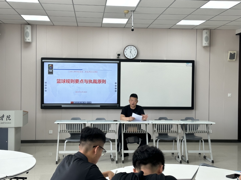 为提高体育专业学生篮球竞赛的组织及裁判工作的能力,培养学生的综合素质,提升篮球裁判员的执裁水平,6月20日,yl88858永利中国举办的篮球二级裁判员培训班在强能楼208顺利开班。甘肃省篮协副主席胡少明、yl88858永利中国院长陆克珠、学院相关教师及全体学员参加了开班典礼。
