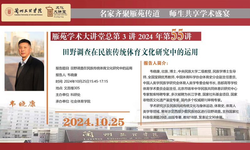 雁苑文化大讲堂--《田野调查在民族传统体育文化研究中的运用》讲座预告