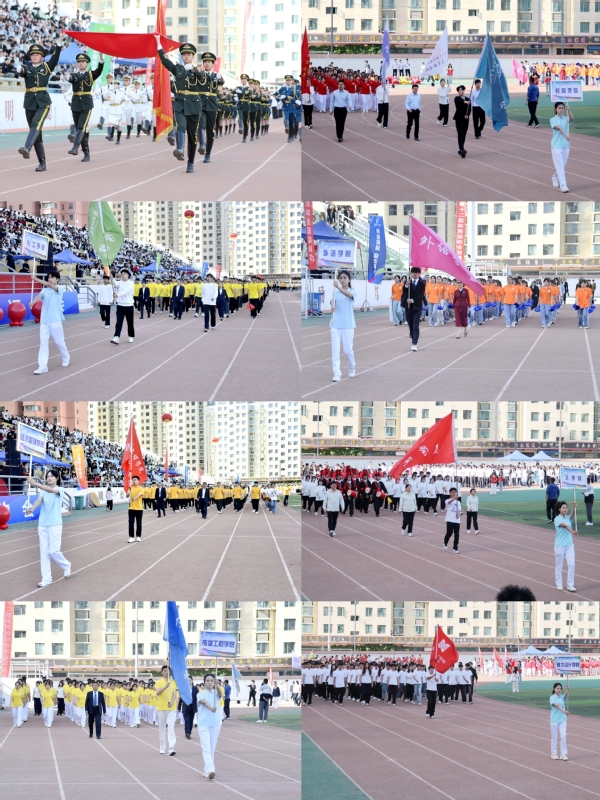 开幕式上,国旗护卫队方阵、各学院代表队、机关代表队迈着整齐的步伐,伴着激昂的旋律,依次通过主席台接受检阅。他们口号响亮、精神抖擞,特色表演尽显青春活力,充分展现了我校师生团结拼搏、昂扬向上的精神风貌,赢得了现场观众的阵阵掌声。
