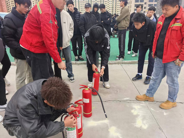 最受师生欢迎的是灭火器材实操培训。在操场指定区域,王老师现场演示了干粉灭火器的正确使用步骤——“提、拔、握、压”。师生们纷纷踊跃上场,亲身体验了如何对准火焰根部进行喷射灭火。一位参与演练的大二学生表示:“以前只在电视上看过用灭火器,今天自己实际操作了一遍,心里踏实多了,真的遇到小火也知道该怎么做了。”