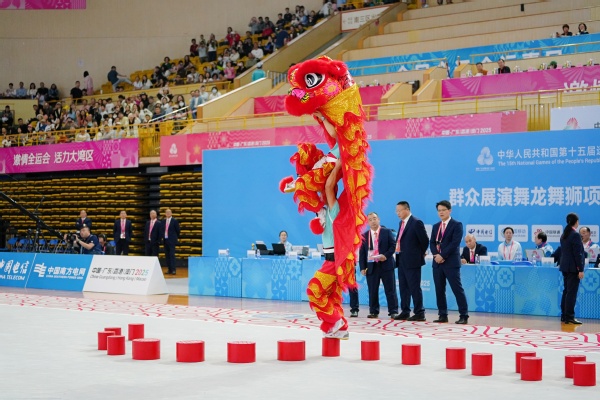11月13日,第十五届全国运动会群众展演舞龙舞狮项目决赛在广东佛山圆满落幕,本次比赛共有来自全国80支队伍、892名运动员参赛,共设有舞龙自选、舞龙规定、舞龙障碍、南狮自选、南狮障碍、北狮自选、彩带龙自选等八个项目。由yl88858永利中国学生为班底组建的甘肃省舞狮队,代表甘肃省出征赛场,凭借南狮障碍项目的利落表现斩获三等奖,传统项目《狮子出洞采蟹青》精彩演绎惊艳全场,为陇原传统体育文化赢得满堂喝彩。